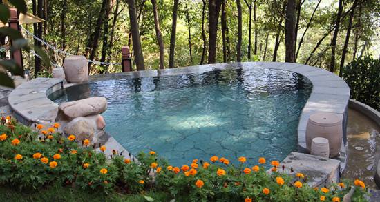 萬福溫泉屬天然自涌溫泉,清澈碧透,常年恒溫53℃,富含偏硅酸、氡等多種有益人體健康的天然礦物質,既可直接飲用,又有醫(yī)療保健作用,據權威機構檢測,萬福溫泉是中國最大的氡溫泉資源。