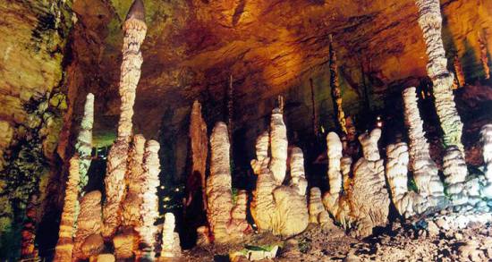 黃龍洞位于索溪峪東面,被稱(chēng)為“地下魔宮”,洞口霧靄迷漫,洞內(nèi)長(zhǎng)廊蜿蜒,鐘乳懸浮,石柱石筍林立,還有石簾、石幔、石花、石琴,琳瑯滿(mǎn)目,異彩紛呈,令人目不暇接?!岸赐舛础?、“樓外樓”、“天外天”、“山外山”,盤(pán)根錯(cuò)節(jié)。黃龍洞內(nèi)可分四層,水陸并進(jìn),從最低陰河至最高穹頂,垂直高度差有100多米,洞內(nèi)有一個(gè)水庫(kù)(黃龍水洞)、二條陰河(響水河、水晶河)、三個(gè)地下瀑布(黃龍瀑、天水瀑、天地瀑)、四個(gè)水潭、十三個(gè)廳(宮)(龍舞宮、水晶宮、迷人宮……)、九十六條游廊,長(zhǎng)度約達(dá)15公里,最大的廳堂有12000平方米,可容納萬(wàn)人。真可謂是洞中乾坤大,地下有洞天。入黃龍洞,如入人間仙境一般。
